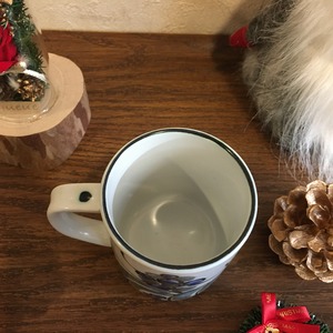 イヤーマグカップは1967年から作られています。年ごとにデザイナーが異なりいろいろなテイストが楽しめるシリーズです。1986年までは手作業にて絵付けが行われていました。素焼きと釉薬の絶妙なグラデーションと、繊細なハンドペイントによるデザインが素敵なシリーズとなります。 和の雰囲気も感じられる独特の焼き方は「ファイアンスFajance 」と言う製法によるもので、 低温(1100℃)でじっくりと焼き上げるため磁器とは異なった土の風合いがあるのが特徴的です。Lサイズの底にはロイヤルコペンハーゲンと深いつながりを持つGeorg Jensenのシルバープレートもはめ込まれており、当時はプレートにメッセージを刻み大切な日のプレゼントとして送られていました。